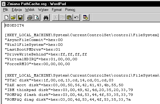 Wprowadzanie danych do Rejestu w środowisku Windows jest proste: wystarczy kliknąć plik *.REG i już dane są zaimportowane.