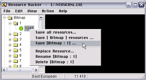 Otwórz kopię programu Ntoskrnl.exe w edytorze zasobów: